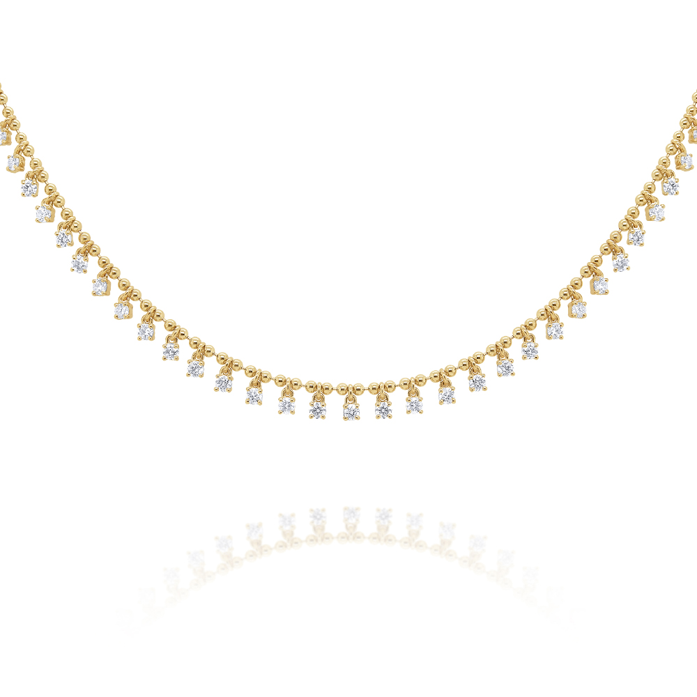 Round diamonds swing freely below a golden chain creating a gorgeous fringe design. Chain is adjustable.