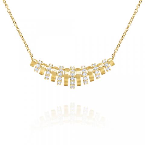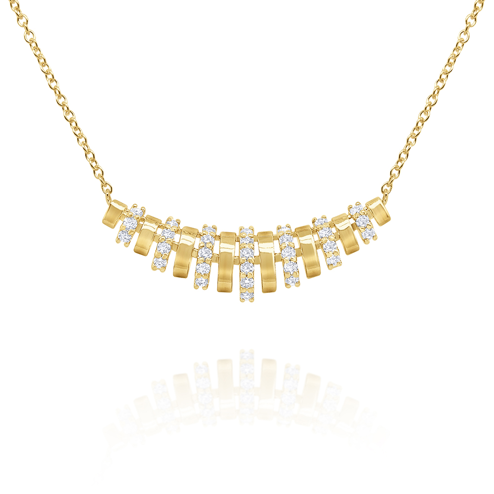 Alternating gold and diamond curved bars make up this modern necklace that will easily compliment any style.