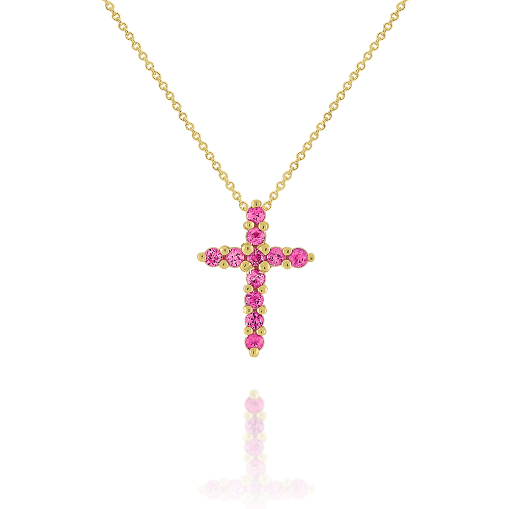 Pink Sapphire Cross Necklace Set in 14 Kt. Gold