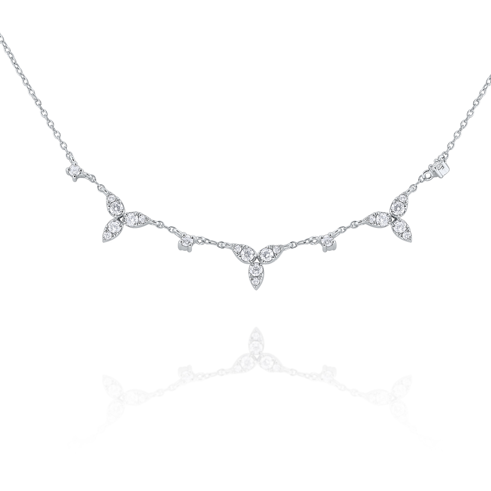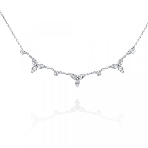 Inspired by a laurel wreath, diamond teardrop clusters are spaced with a diamond chain to form this delicate necklace.