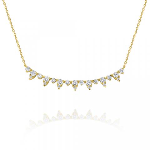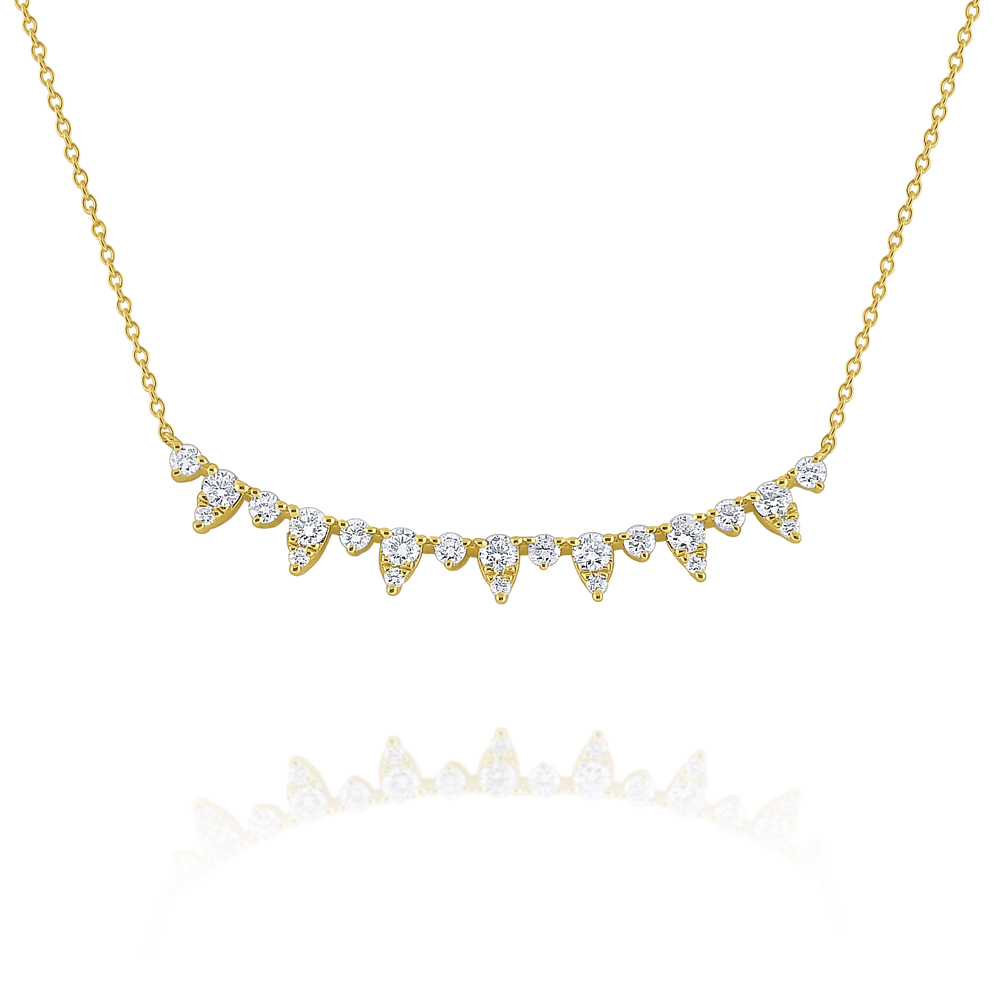 You will be all smiles when you wear this pretty curve necklace. Glittering round diamonds play off each other to make you feel like a princess.