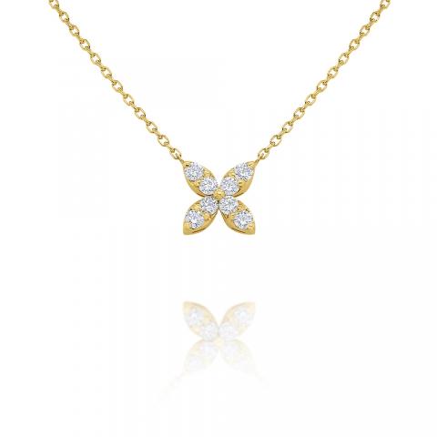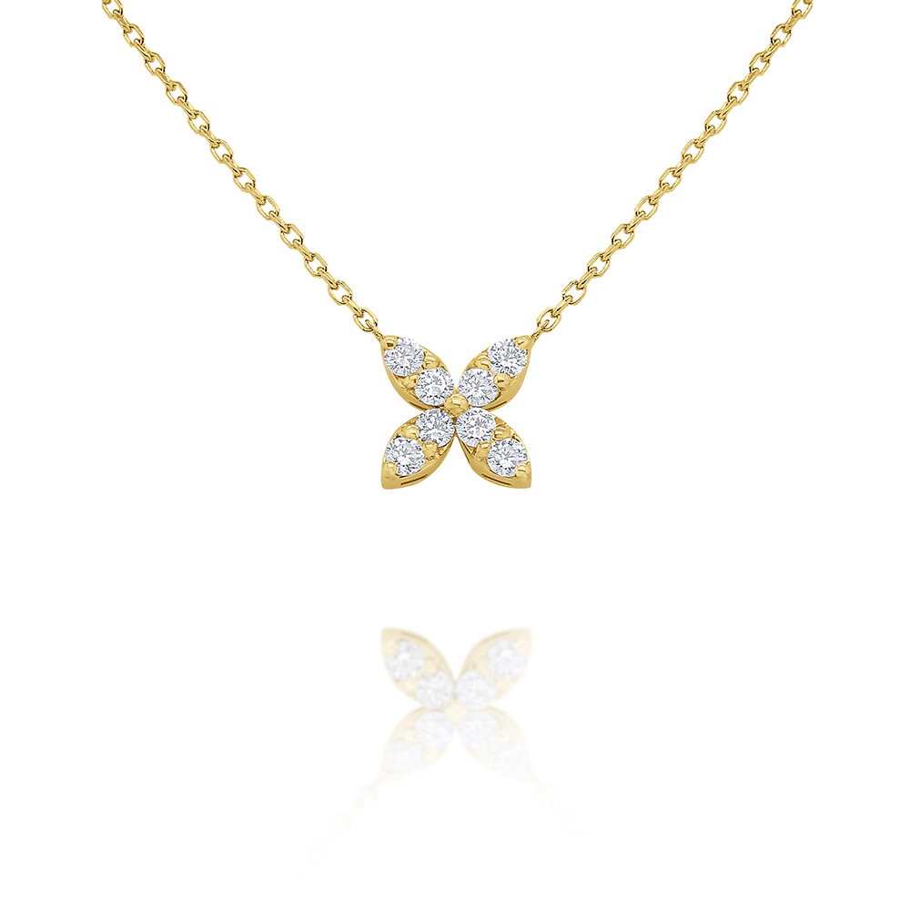 Four diamond set marquis shapes form a modern, simplified butterfly design. Comes on a 16" chain.