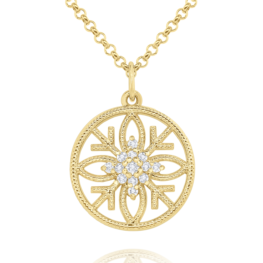 Show your love for the winter season with this beautiful gold and diamond snowflake necklace.