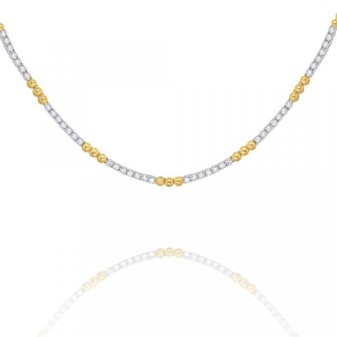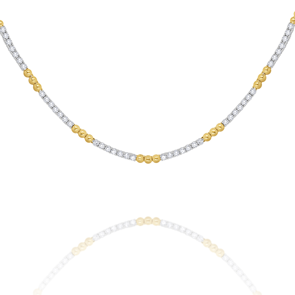 We've added a modern twist to the classic tennis necklace by adding alternating sections of golden spheres. Elegant everyday elegance.