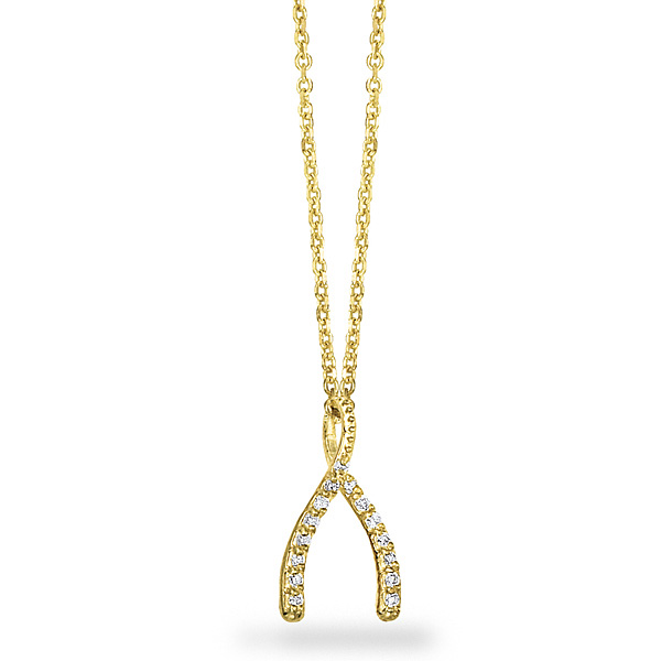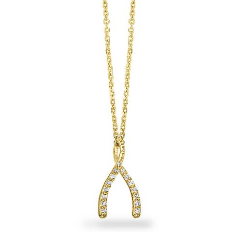 Make a wish! Layer up your lucky charms with this adorable gold and diamond wishbone necklace.