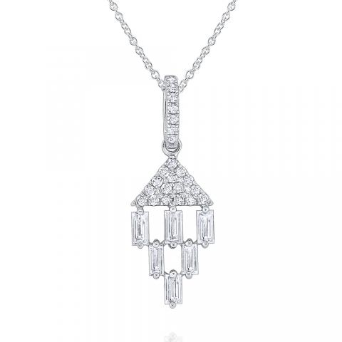 Dare to dazzle in this chic necklace. Part of KC Designs Mosaic Collection, carefully arranged shining baguette cut diamonds hang below a triangle of glittering round cuts.