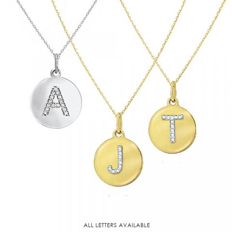 14k Gold and Diamond Large Disc Initial Necklace on Adjustable 16-18" Chain