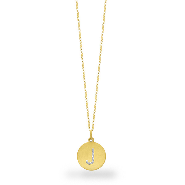 Diamond Disc Initial "J" Necklace in 14k Yellow Gold with 8 Diamonds weighing .04ct tw.