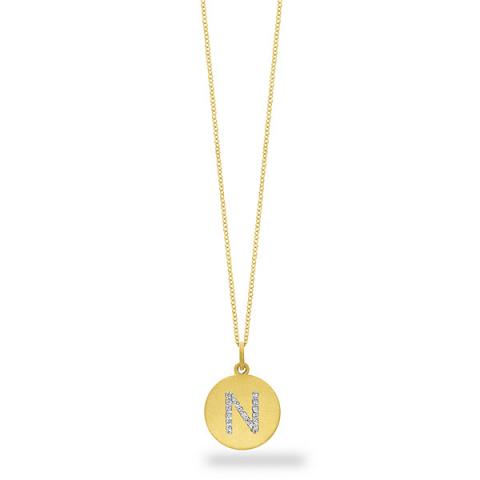 Diamond Disc Initial "N" Necklace in 14k Yellow Gold with 18 Diamonds weighing .08ct tw.