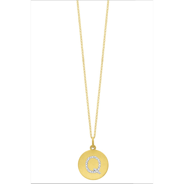 Diamond Disc Initial "Q" Necklace in 14k Yellow Gold with 21 Diamonds weighing .09ct tw.