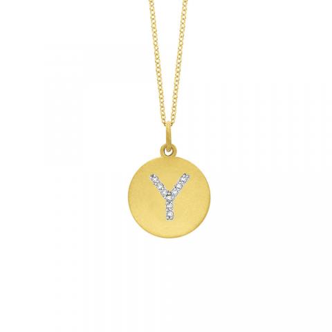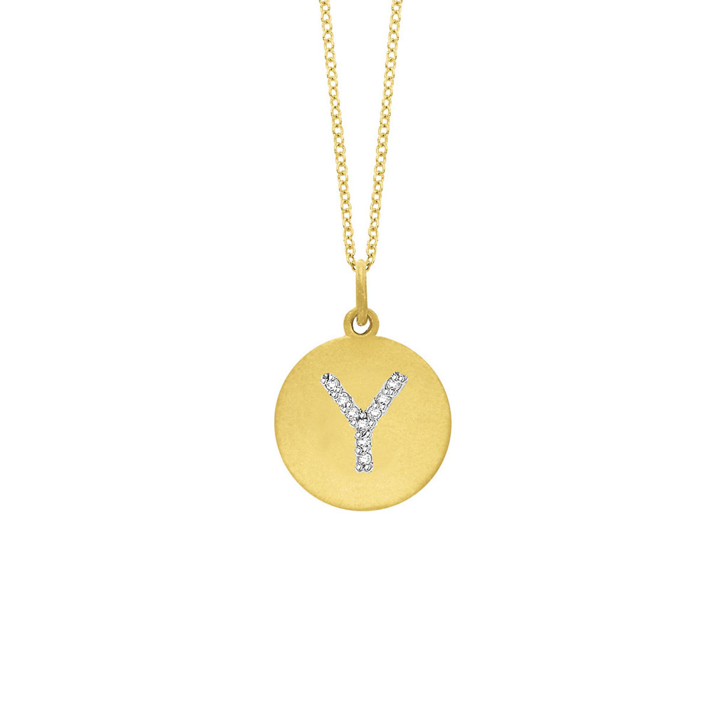 Diamond Disc Initial "Y" Necklace in 14k Yellow Gold with 9 Diamonds weighing .05ct tw.