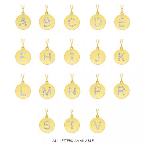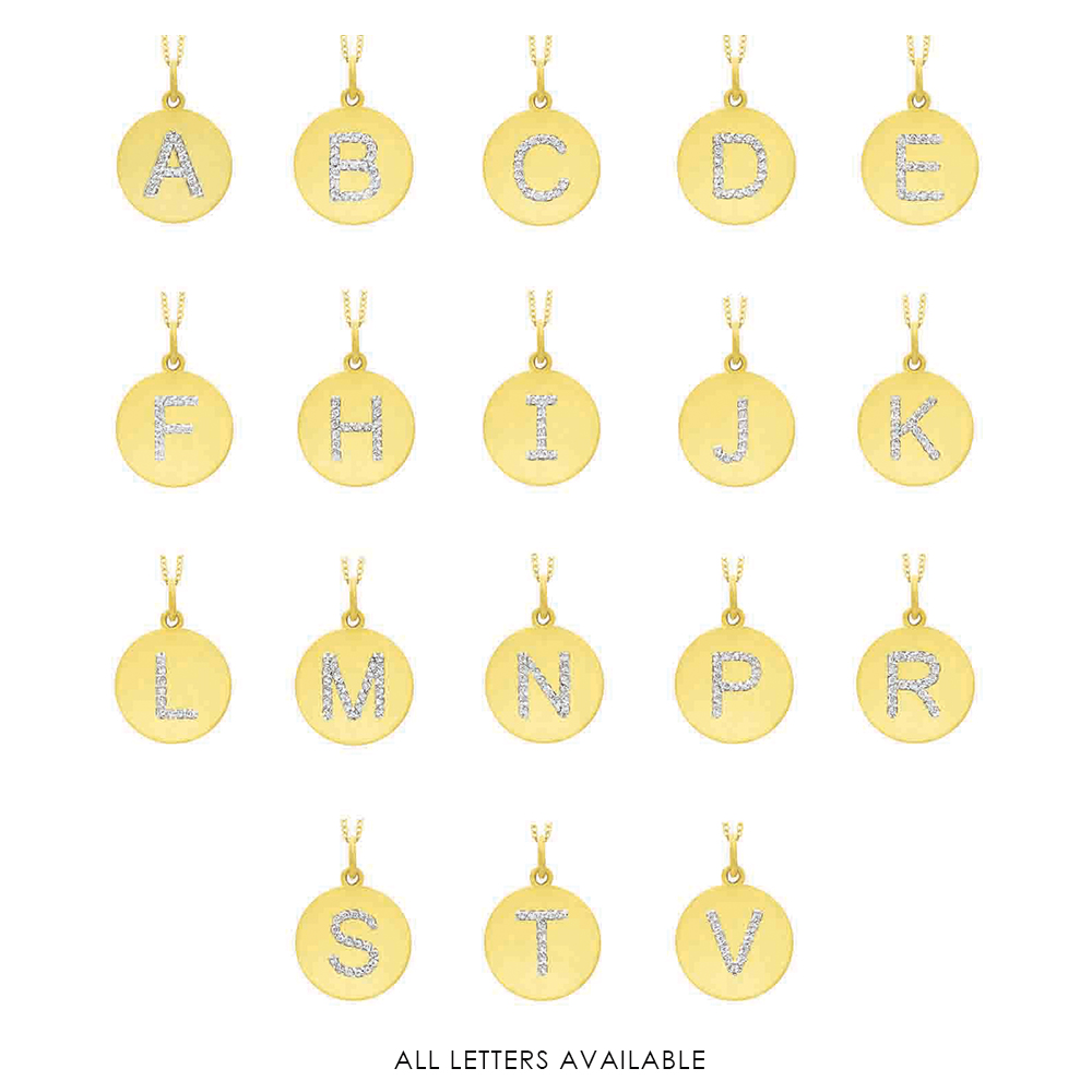 14k Gold and Diamond Large Disc Initial Necklace on Adjustable 16-18" Chain