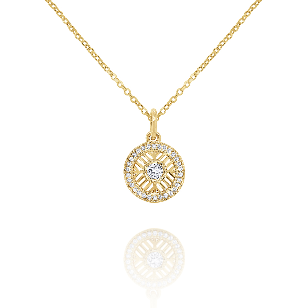 Wear solo or stack other pendant charms onto this mini medallion necklace. Comes on an adjustable 16,17,18" chain.