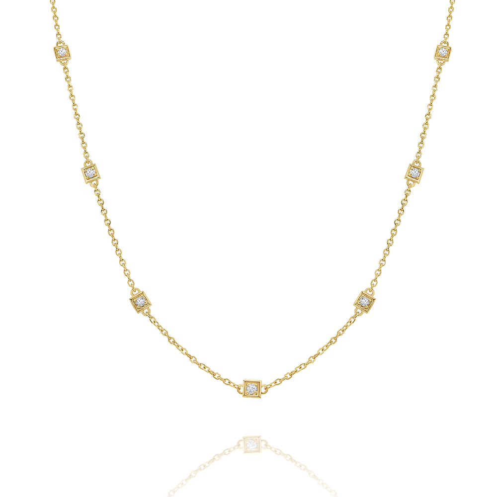 14k Gold and Diamond Square Diamond by the Yard Necklace