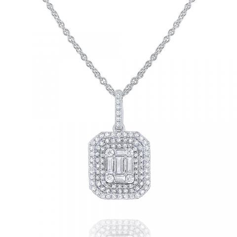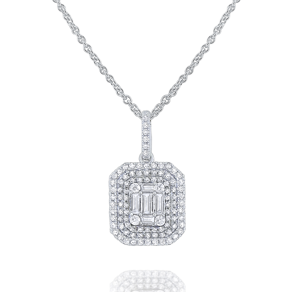 Light up your look in this chic necklace. Part of KC Designs Mosaic Collection, a rectangle of shining baguette cut diamonds is framed by glittering round cuts.