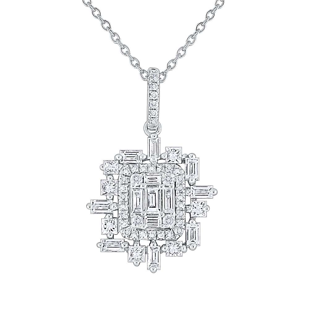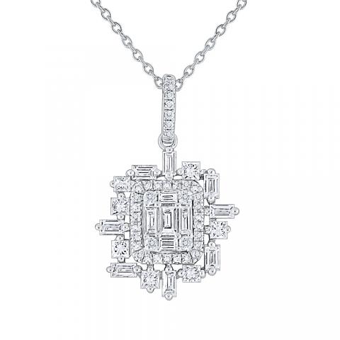 Shine bright in this chic metropolitan necklace! Shining baguette cut diamonds play off of glittering round cuts in an elegant and stylish way. Wear it with a matching ring & earrings for a complete look.