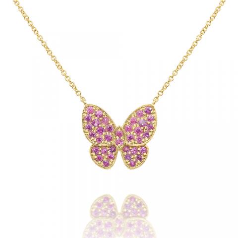 14k Gold and Pave Pink Sapphire Butterfly Necklace