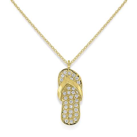 Diamond Flip Flop Necklace in 14k Yellow Gold with 38 Diamonds weighing .28ct tw.