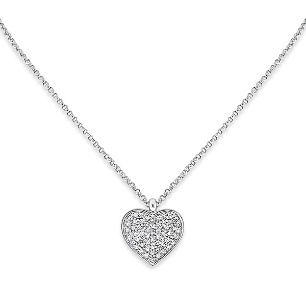 Diamond Heart Necklace in 14k White Gold with 57 Diamonds weighing .20ct tw.