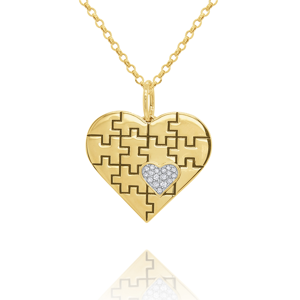 Love is both a mystery and a puzzle...as we illustrated in this gold and diamond heart necklace.