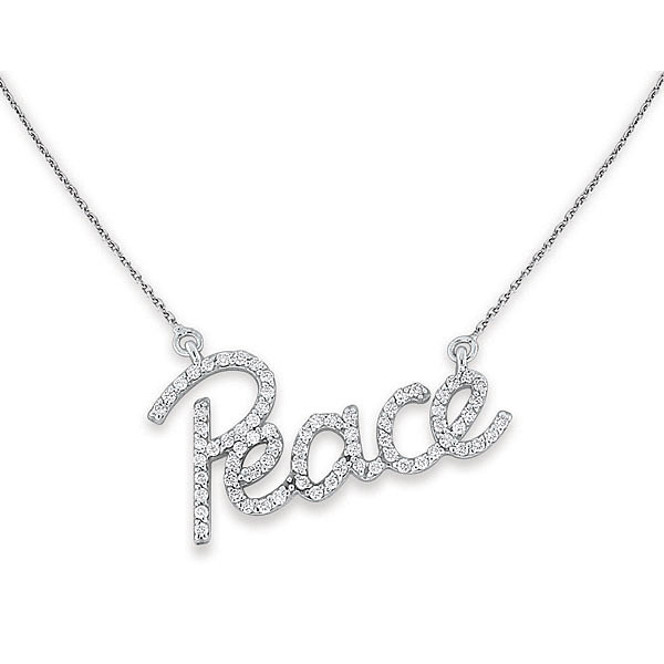 Peace on earth is a beautiful thing, so express your dream for a peaceful world with this elegantly designed diamond peace necklace. It contains 72 shimmering .40 ct tw diamonds and it is shown here in lovely and classic white gold. Superb craftsmanship and creative design combine to create a truly unforgettable fashion statement.