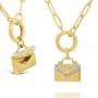 Lift the from diamond circle on this golden envelope to reveal a secret pocket to place a tiny token of love. Charm is removeable or add other charms.