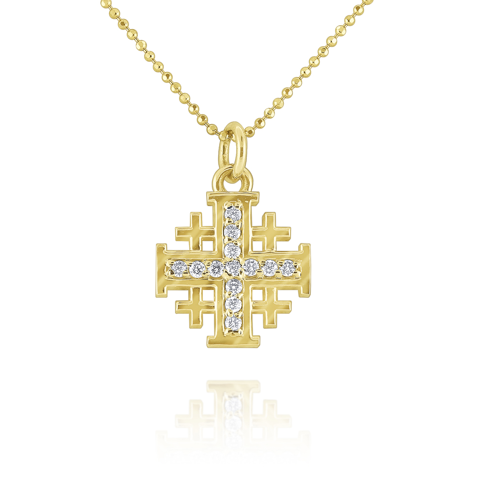 Also known as the “five fold cross” the Jerusalem cross consists of one central cross surrounded by four smaller Greek crosses. It was used as the coat of arms for the Kingdom of Jerusalem from the late 13th century.