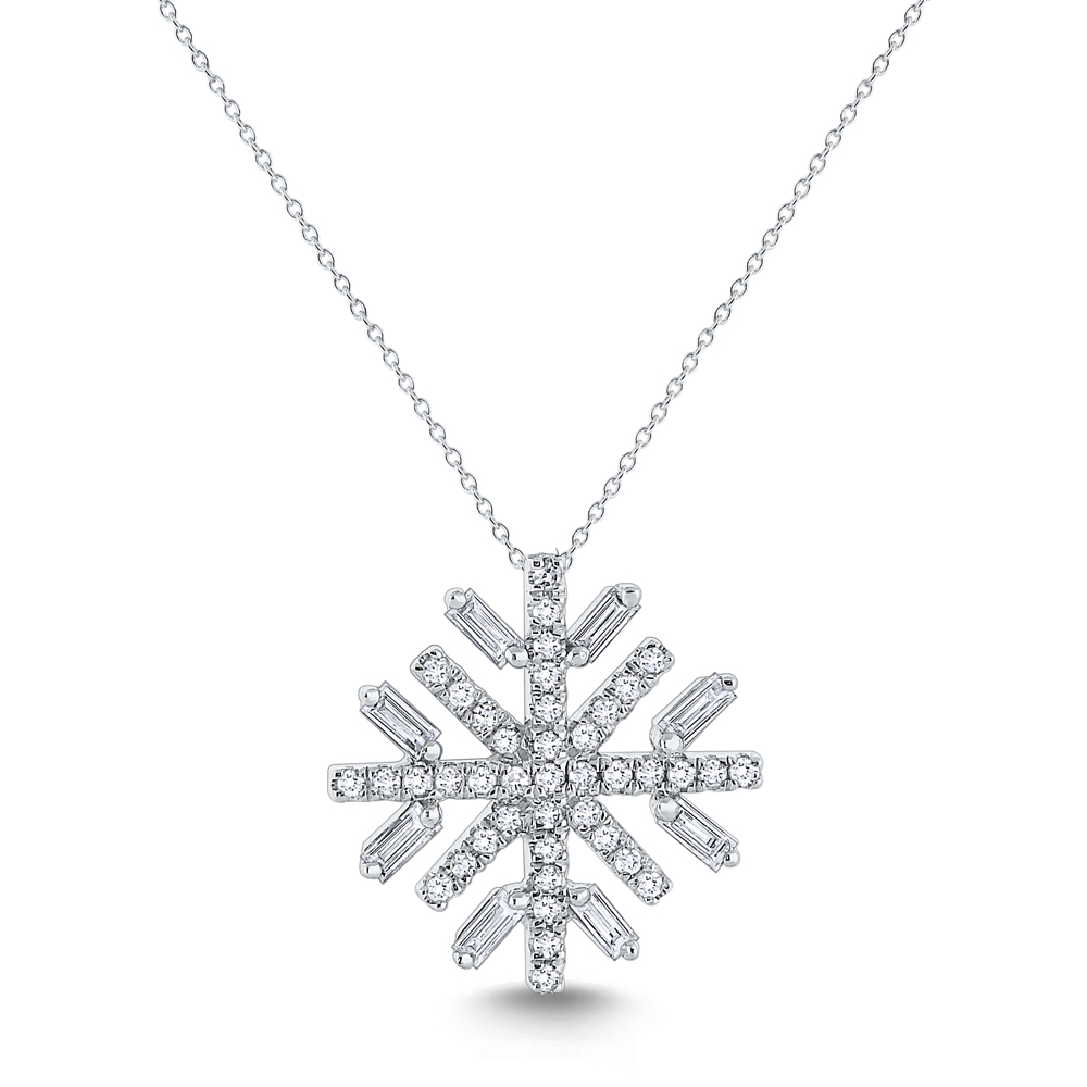 When you head off into a winter wonderland, don’t forget your diamonds! This sparkling snowflake necklace is just the touch.