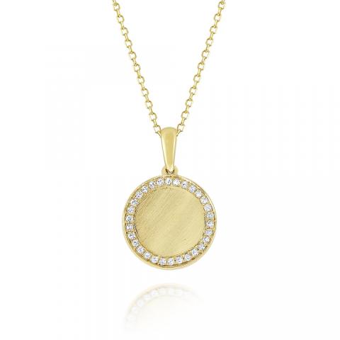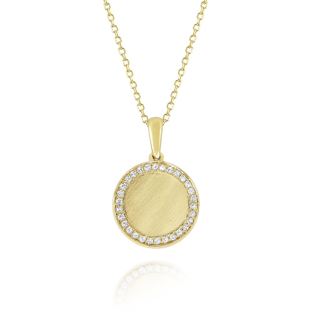 Gold Disc with a brushed finish accented by a frame of diamonds is perfect as is, or can easily be engraved with an initial.