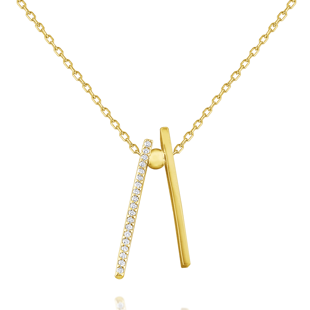 Parallel lines crafted in 14k gold and diamonds make up this clean and modern necklace.