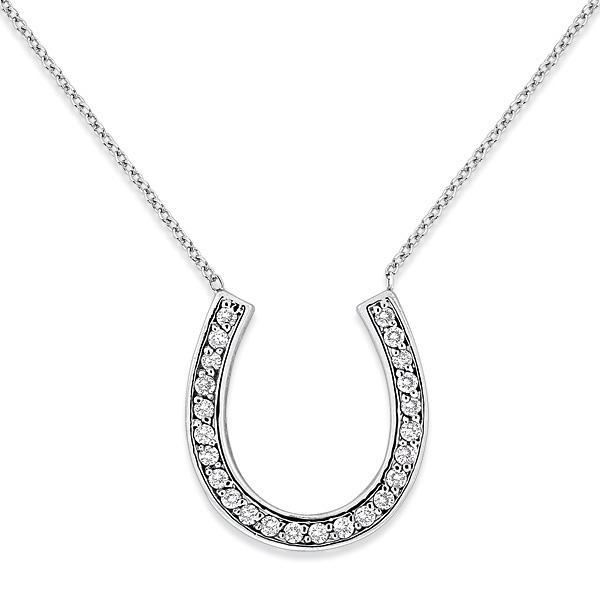 Whether you like to keep a horseshoe as a good luck charm or you want to show off your love of horses, this diamond horseshoe necklace makes a fun and playful style statement. The horseshoe is bedecked with 24 shining .33 ct tw diamonds that give it a touch of glamor and sophisticated. It is pictured here in elegant white gold.