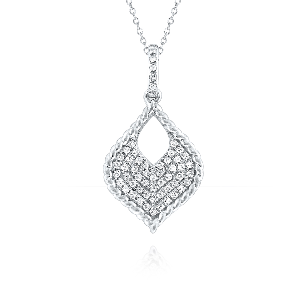 Inspired by leaves in nature, this necklace is beautifully crafted in 14K gold and diamonds framed with a delicate rope design.