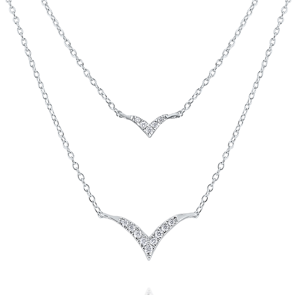 Diamond take flight! Two golden chains delicately hold two diamond bird silhouettes for a simple layered look that is perfect for any necklace.