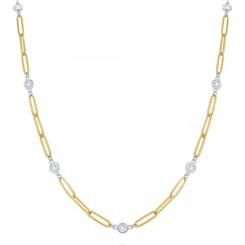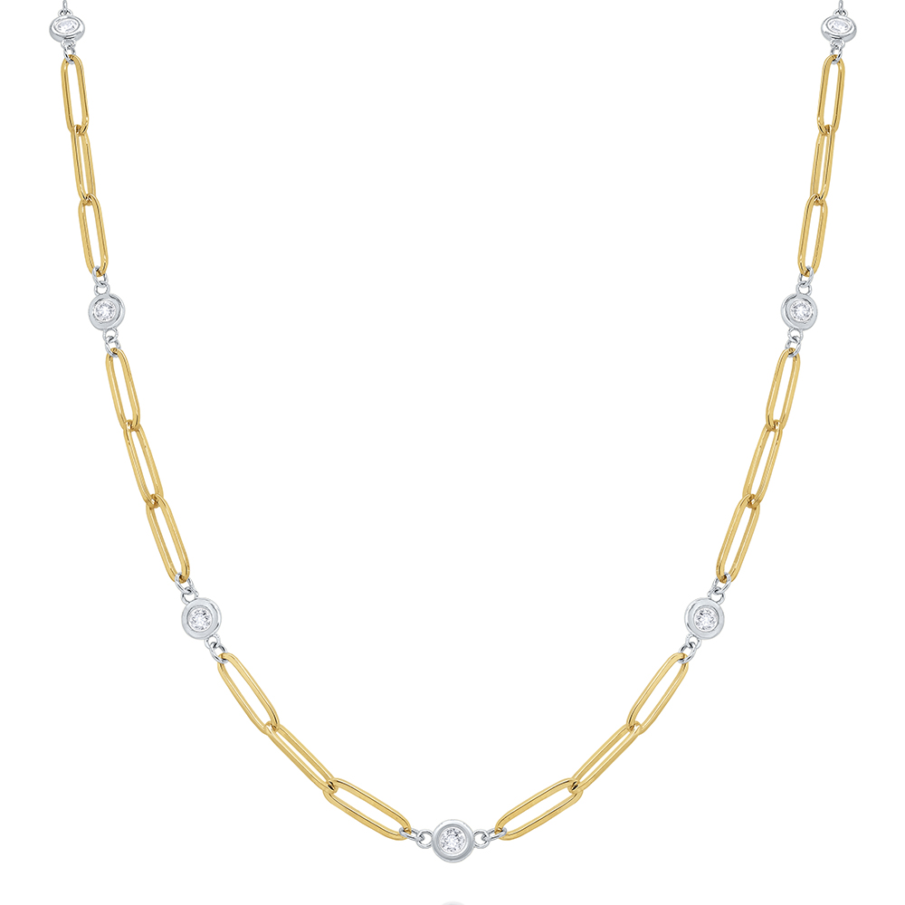 A modern twist to the classic diamond by the yard necklace. Wear solo or layer it with other golden link necklaces.