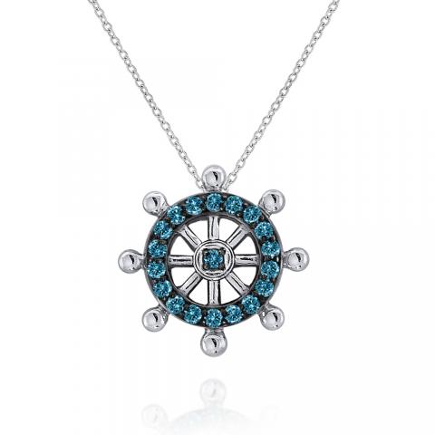 Bon Voyage! Be prepared to set sail into summer with this gold and blue diamond necklace. Pair with our matching blue diamond ships wheel studs to complete the look.