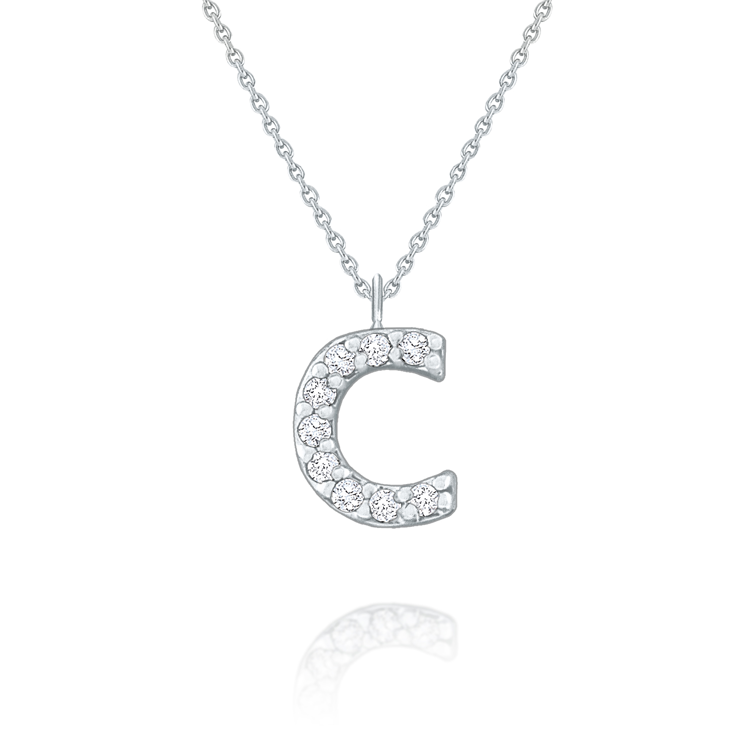 An adorable diamond "c" hangs below a 16" chain. Wear one or slide n stack multiples to personize it.