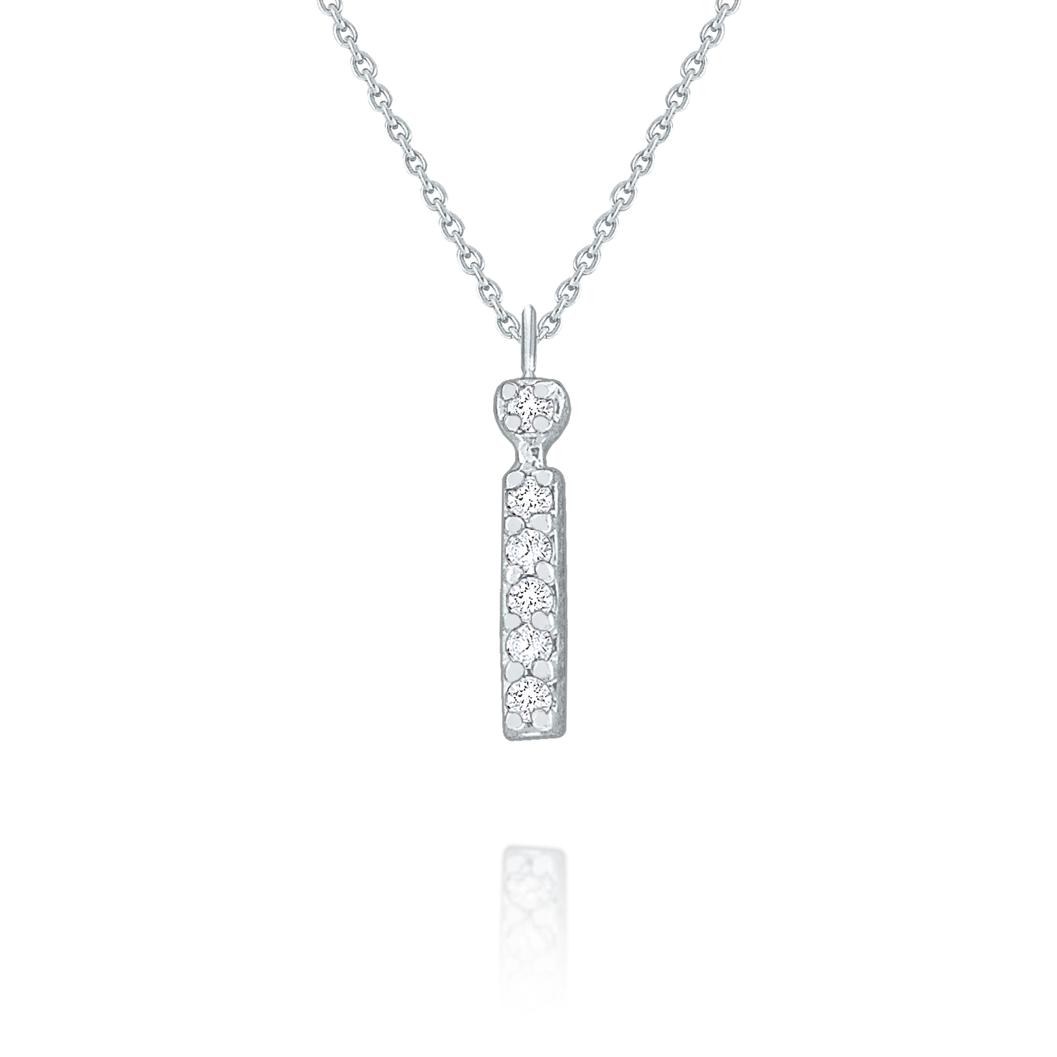 An adorable diamond "i" hangs below a 16" chain. Wear one or slide n stack multiples to personize it.