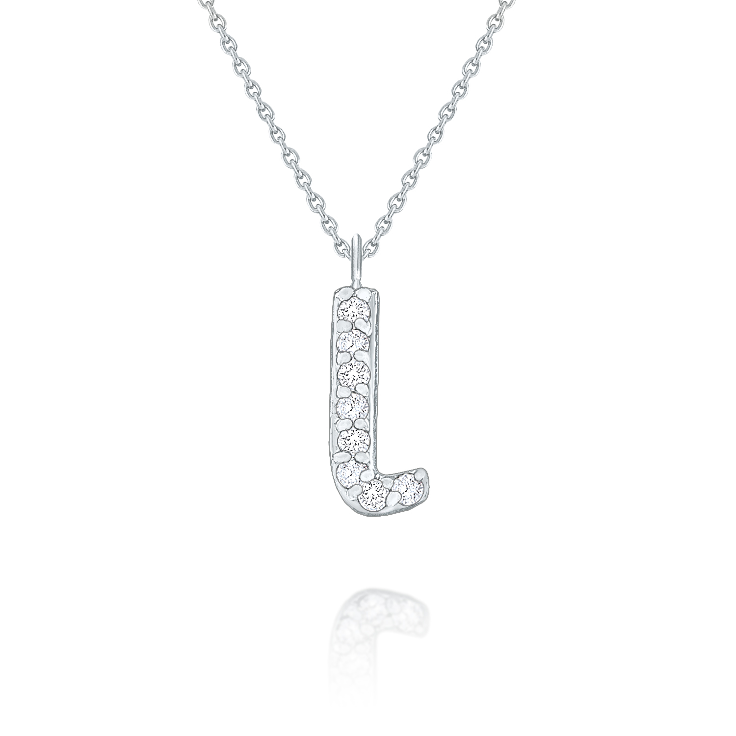 An adorable diamond "l" hangs below a 16" chain. Wear one or slide n stack multiples to personize it.