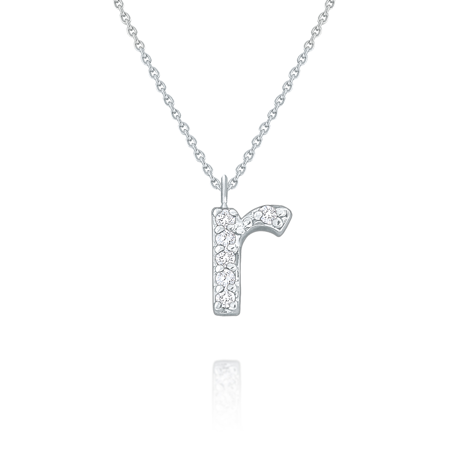 An adorable diamond "r" hangs below a 16" chain. Wear one or slide n stack multiples to personize it.