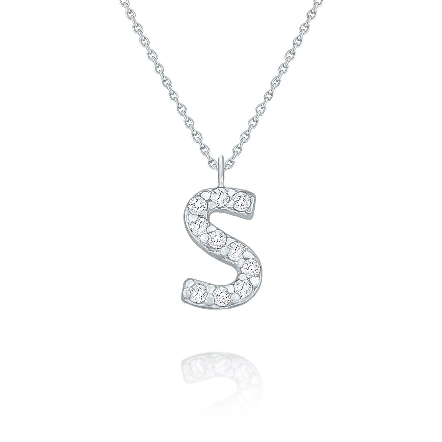 An adorable diamond "s" hangs below a 16" chain. Wear one or slide n stack multiples to personize it.