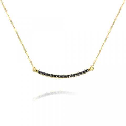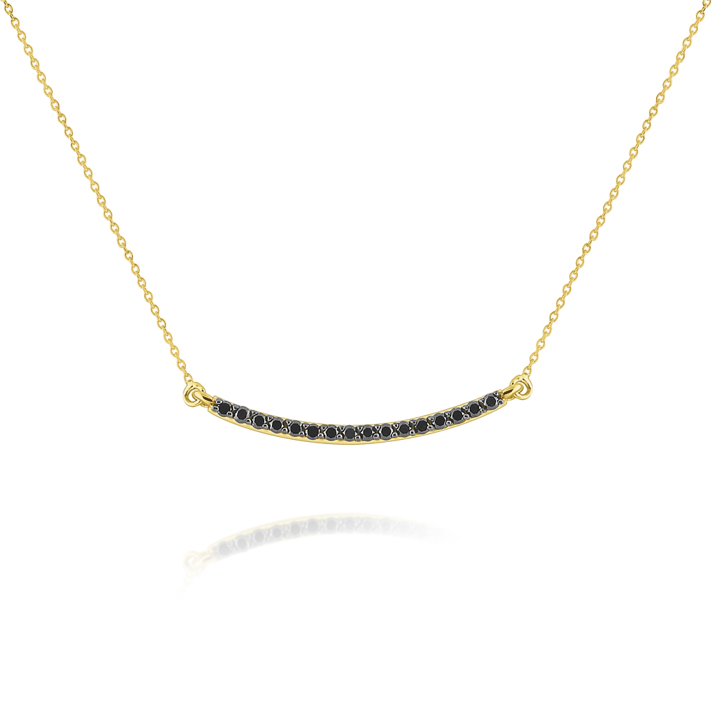 Yellow gold and black diamonds are an edgy combination. Wear it well with this curved bar necklace, with an adjustable 16,17 and 18" adjustable chain.