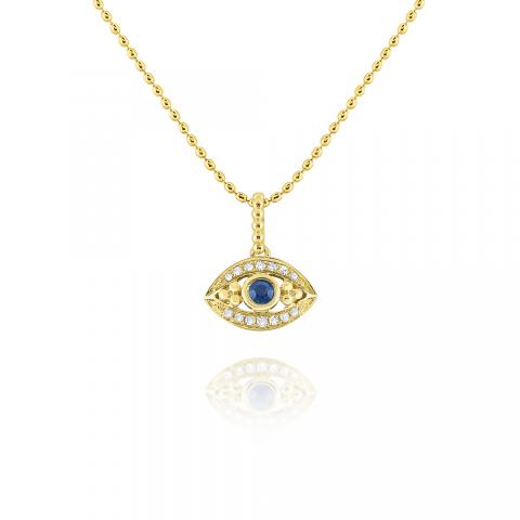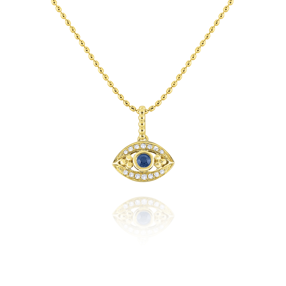 14k Diamond and Blue Sapphire Evil Eye Necklace