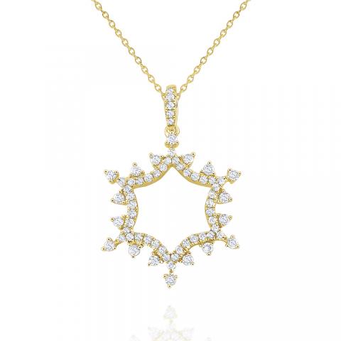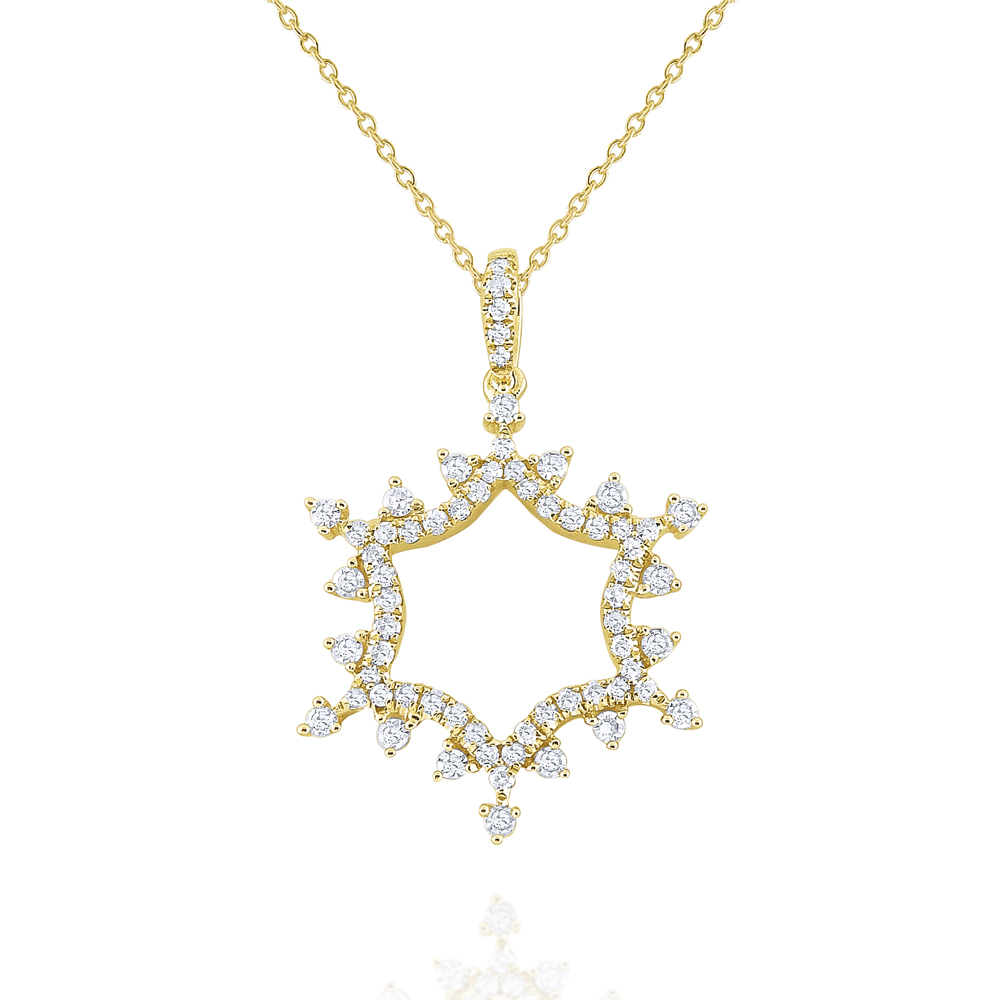 Ice is nice when it is set in gold! 65 sparkling diamonds set in 14k gold make up this gorgeous snowflake necklace. Pair it up with the matching earrings, E8985.