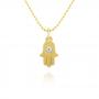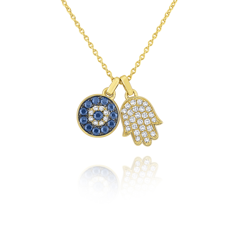 14k Blue Sapphire and Diamond Evil Eye and Hamsa Necklace on 16-18" Chain