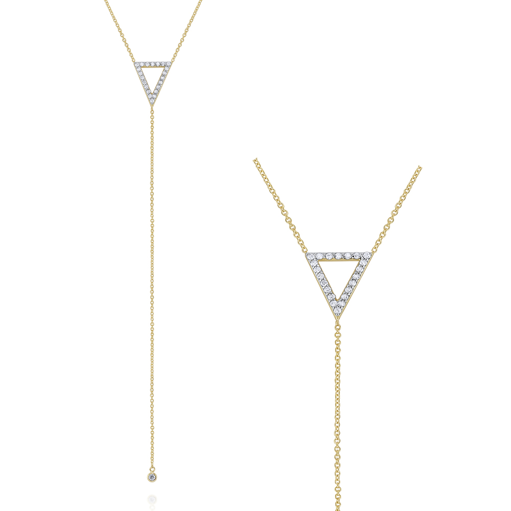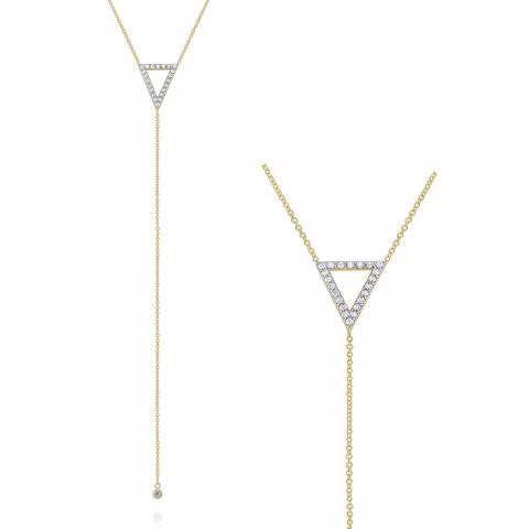 Gold and Diamond Open Triangle Lariat Necklace