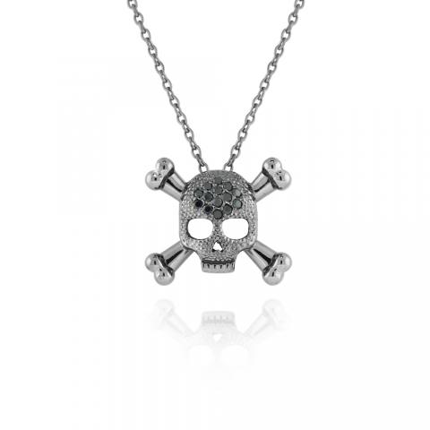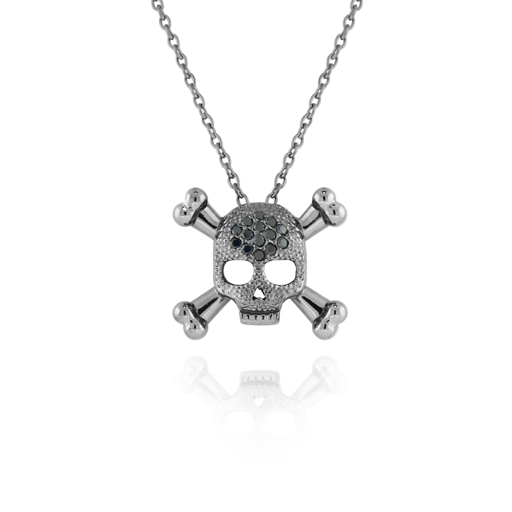 Bring out your inner Mad Max rebel with this edgy black diamond and blackened 14k gold skull and bones necklace.
