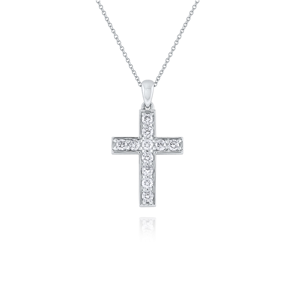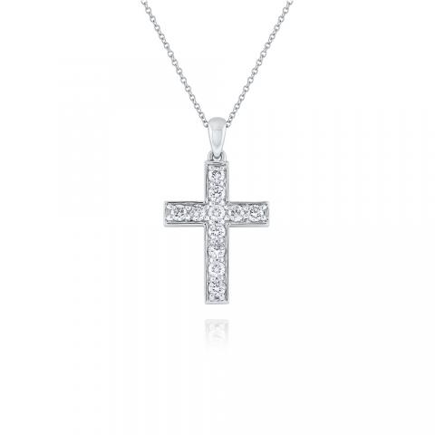 Show your faith with this beautifully set diamond cross necklace with adjustable 16-18" chain.