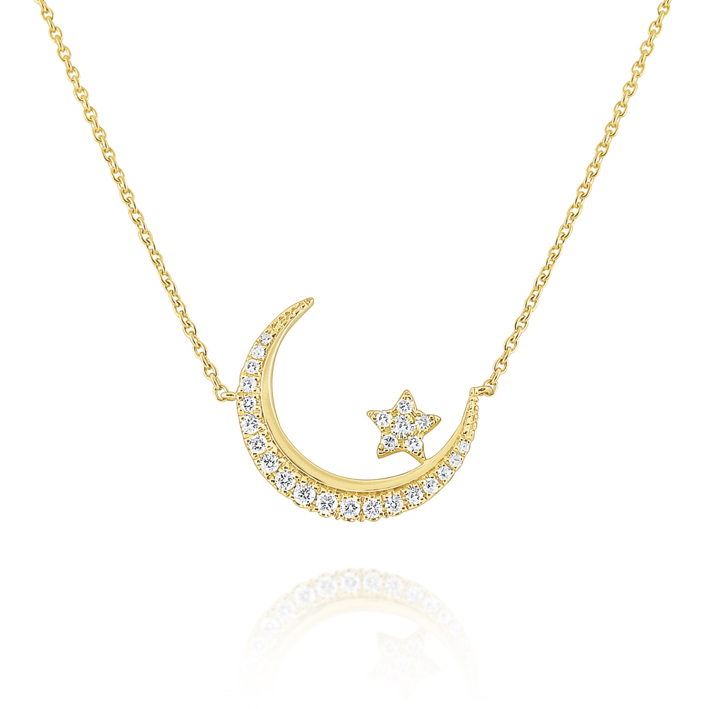 Wish upon a star wit this adorable crescent moon and star necklace. Wear it solo or layer it with your other celestial charms.