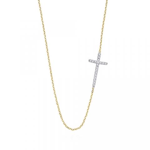 14k Gold and Diamond Side Cross Necklace, 18"