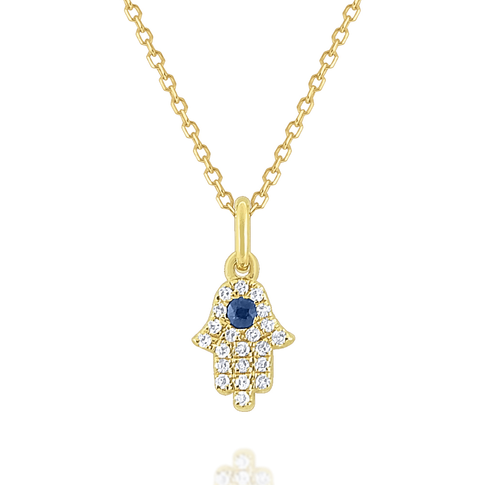 14k Gold, Diamond and Blue Sapphire Hamsa Necklace
